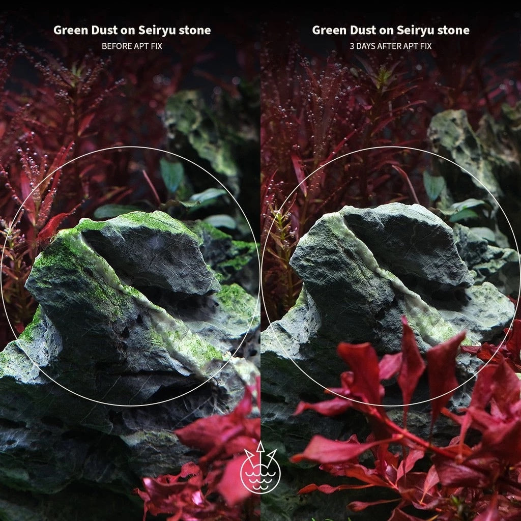 APT Fix works to rebalance the system by targeting the fundamental weakness of algae- their comparatively less developed protective cell walls. When spot-dosed per the recommended dosage, it instantly arrests algae growth while allowing plants to recover.